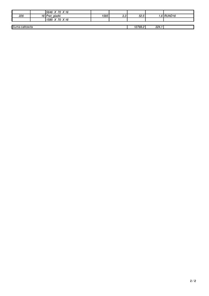 c) zestawienia materiałowe, stanowiące integralne uzupełnienie wszystkich rysunków dołączonych do projektu warsztatowego. Zestawienia dzielą się na listy materiałowe, listy elementów wysyłkowych, listy strukturalne czyli tzw. listy złożeniowe oraz listy łączników. Każde zestawienie zawiera informacje niezbędne do kontroli i nadzoru procesów produkcyjnych oraz dostarczenia elementów na budowę. Masy podane w zestawieniach materiałowych mogą być określone dla objętości elementów brutto (objętość elementu przed wykonaniem wykroju) lub netto (objętość rzeczywista elementu). Poniżej przedstawiamy przykładowe listy.